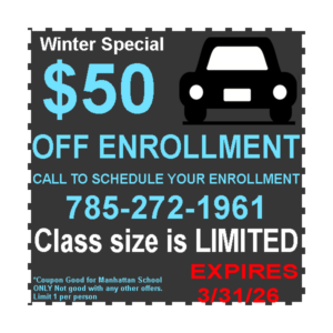 - ONLY open during the Kennedy Driving School Manhattan KS academic classes.