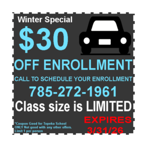 No need to clip the coupon, just call to enroll and tell us you saw it on the Kennedy Driving School Topeka website.